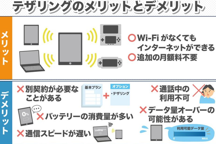 一方で、テザリングは外出時や旅行中など、不便な状況でもインターネットアクセスを確保できるというメリットがあります。以下は、その主な特徴です: