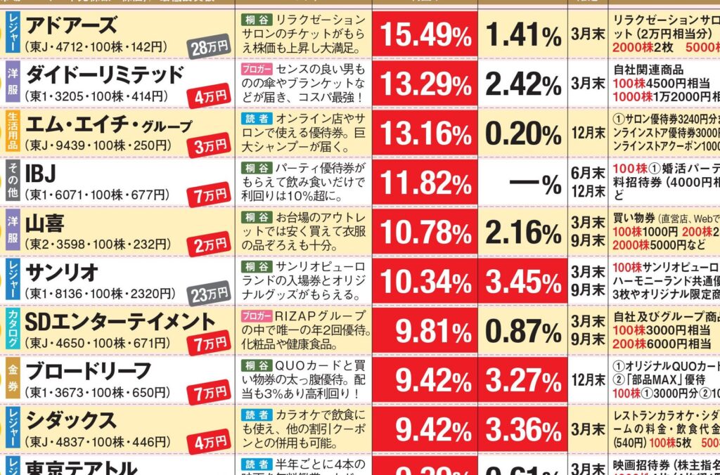初心者が株主優待を利用する際、特に注目すべき銘柄があります。これらの銘柄は、投資額が10万円以下でありながら、多様な特典やサービスを提供しているため、初めての方でも安心して投資を始めることができます。また、株主優待によって得られるリターンは、経済的なメリットだけでなく、企業との関わりを深める楽しみもあります。