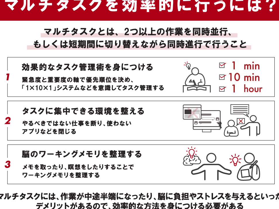 - タイムブロッキング: 特定の時間帯に特定の作業を集中して行うことで、生産性を高めます。
