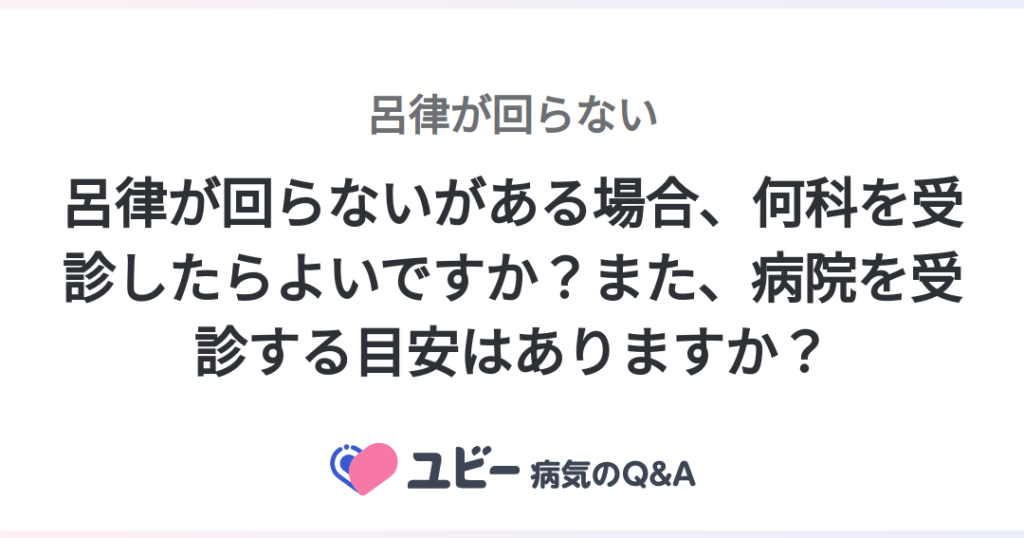 呂律が回らない症状が現れた場合、まずはどの専門医を受診すべきかを考えることが重要です。様々な原因や関連疾患が考えられるため、それぞれの専門分野における知識や技術を活用することが、適切な診断と治療につながります。