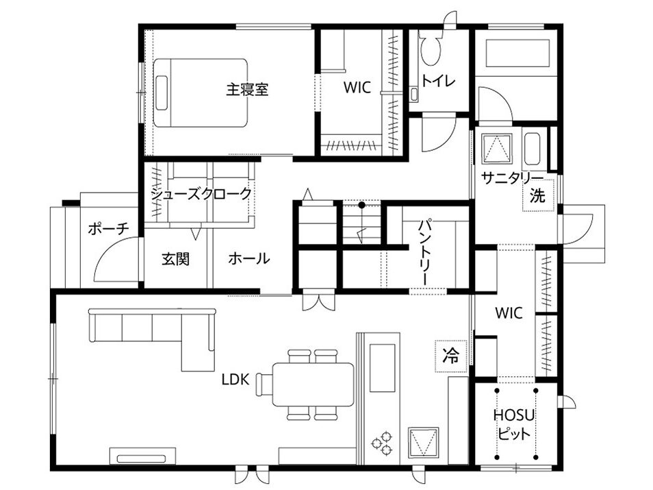 - 靴・バッグゾーン: 靴やバッグなど小物も一箇所にまとめて整理。