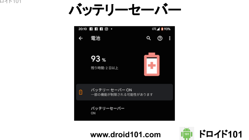 バッテリーセーバーは、バックグラウンドアプリ制御や通知制限などによって、無駄な電力消費を防ぎます。具体的には以下のような機能があります。
