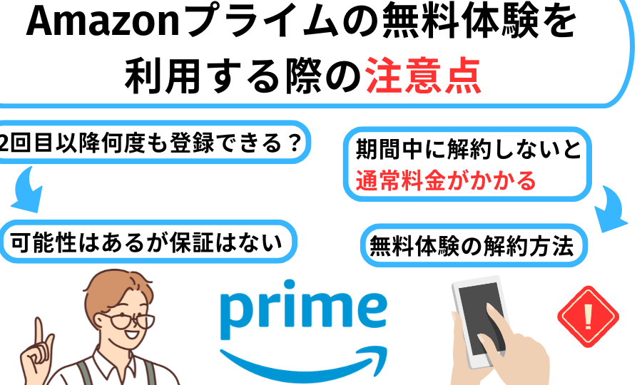 - 不正行為の定義: Amazonは、同一人物による複数アカウントの作成や運用を禁止しています。このため、一人で複数の無料体験を享受することは認められていない場合があります。