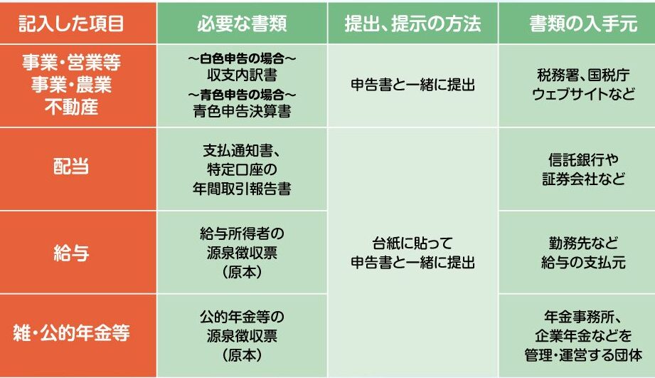 確定申告においては、以下の書類が一般的に必要とされます: