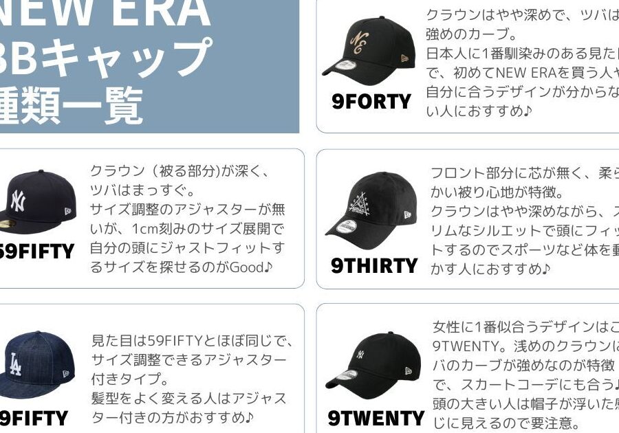 人気のあるニューエラモデルは、それぞれ独自の特徴を持ち、私たちのスタイルや用途によって選ぶべきポイントが異なります。このセクションでは、各モデルの特性を詳しく見ていき、どのように自分に最適なキャップを選ぶことができるかをご紹介します。