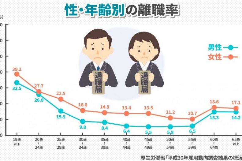 上記の表からも明らかなように、小売業は最も高い離職率を示しており、その背景には季節的な雇用形態や競争が激しい市場環境が影響しています。一方で、金融・保険業務は比較的低い離職率を維持しており、このことは安定した雇用条件やキャリアパスの整備が進んでいるためと考えられます。
