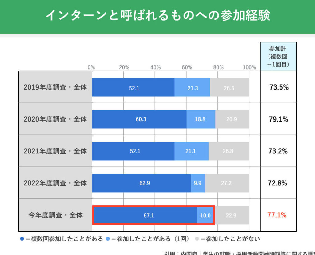 インターン 何日間で得られる経験のタイプ