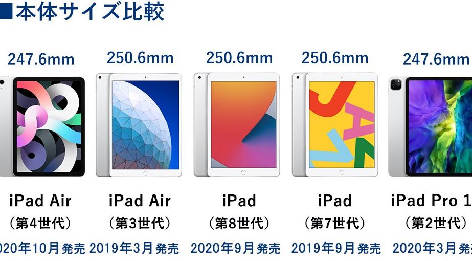 解像度とサイズ : 第3世代から10.5インチへ、第4世代・第5世代では10.9インチとなり、大画面で作業や視聴を楽しむことが可能です。