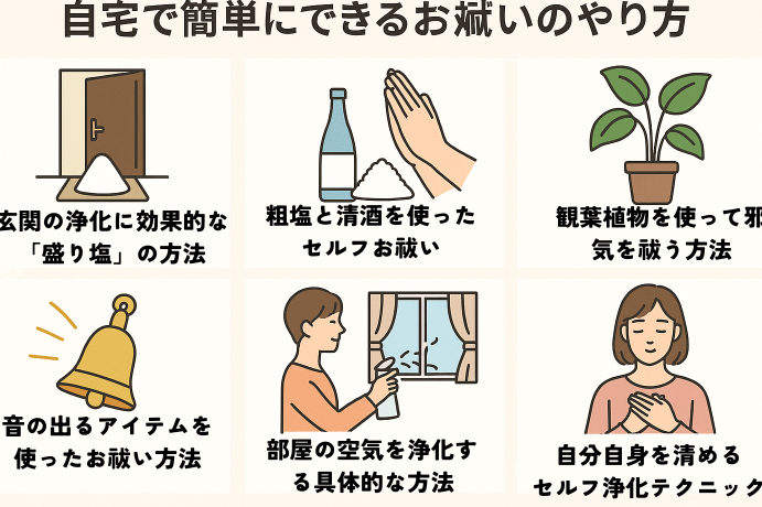 厄払いにはさまざまな方法があります。一般的には、神社でのお祓いや、お札、塩などを用いた自宅で行う簡潔な儀式も含まれます。それぞれの地域や家庭によって異なる風習が存在し、自分自身に合ったスタイルで実施することが大切です。