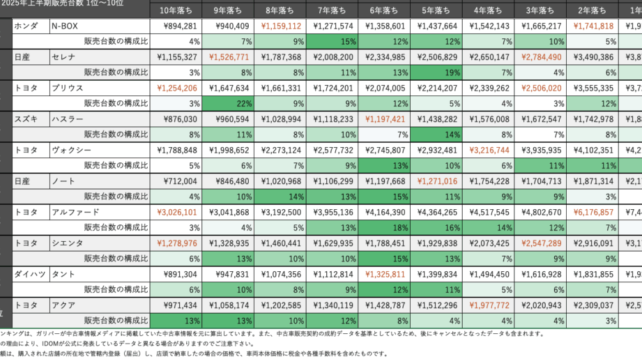 日本における新車と中古車の価格比較