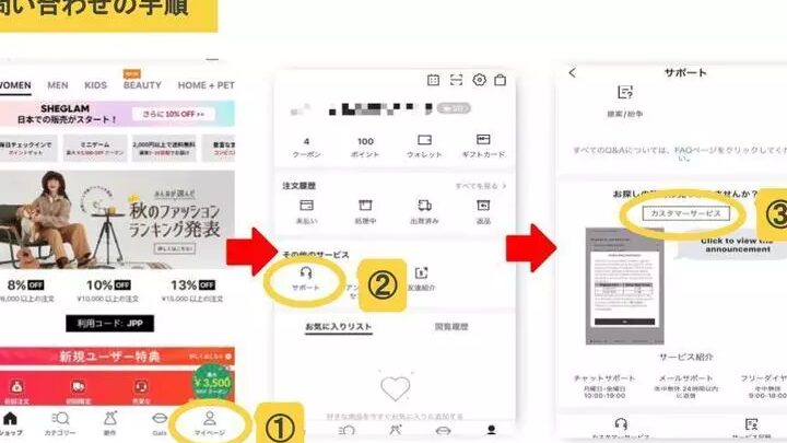 - アカウントログイン: Sheinのウェブサイトまたはアプリにアクセスし、既存のアカウントにログインします。まだアカウントをお持ちでない方は、新規登録が必要です。
