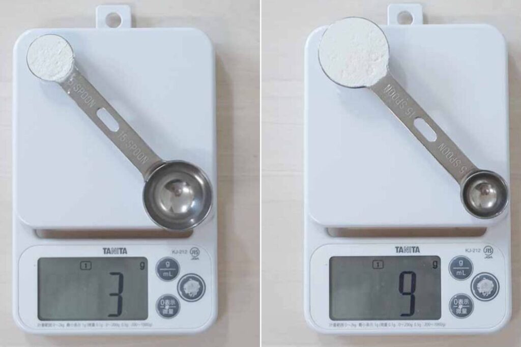 - 押し込みすぎない: 材料を小さじに詰め込みすぎないよう注意してください。これにより誤った重量になり得ます。