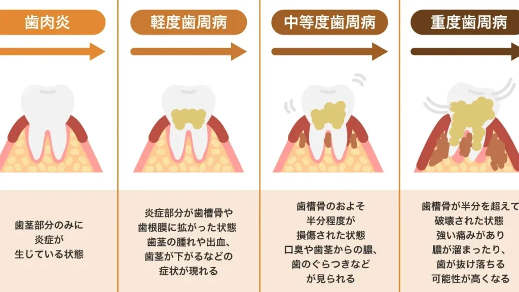 - 後期段階: 神経まで感染が広がり、自発的な痛みや強い鈍痛を引き起こす可能性があります。